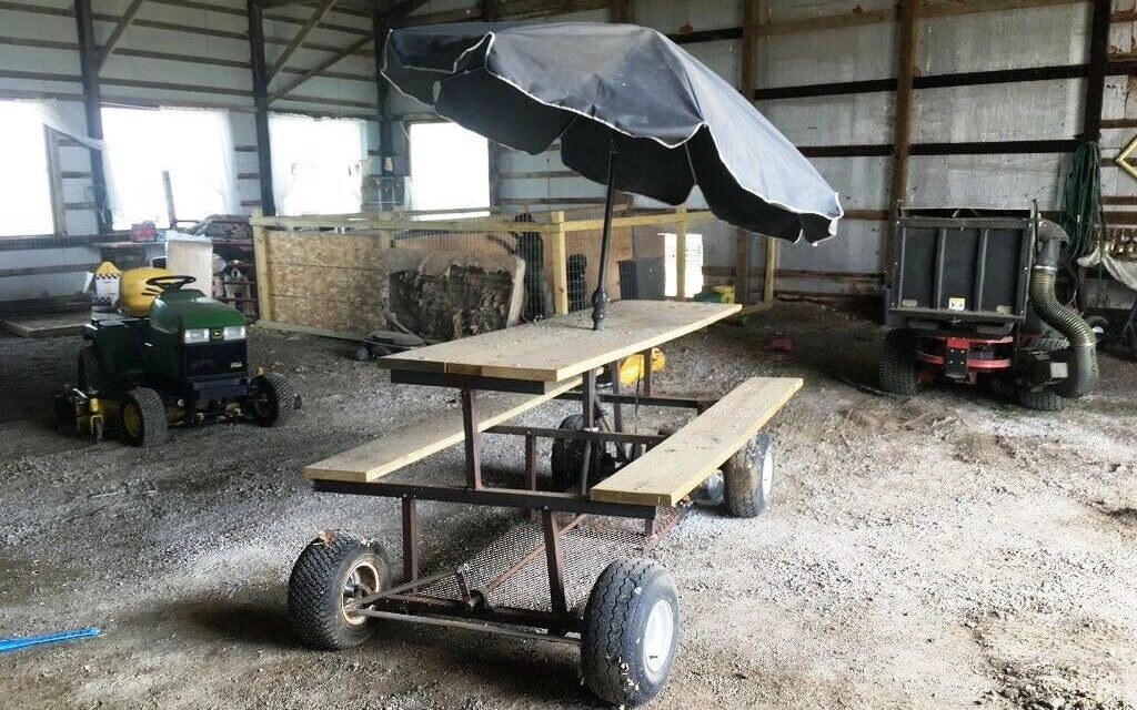 Still in the barn, this amazing custom creation promises to please! Featuring room for twelve, disc brake (singular), and a fully boxed steel frame, this motorized picnic table in Lucerne, Indiana seeks a new owner looking for a turn-key answer to the modern family’s perpetually recurring question: “Where should we eat tonight?” If you need a creative solution to accommodate your family on the go, cast a bid here on eBay where at least ten lots have set the market value above the plateau of $350.