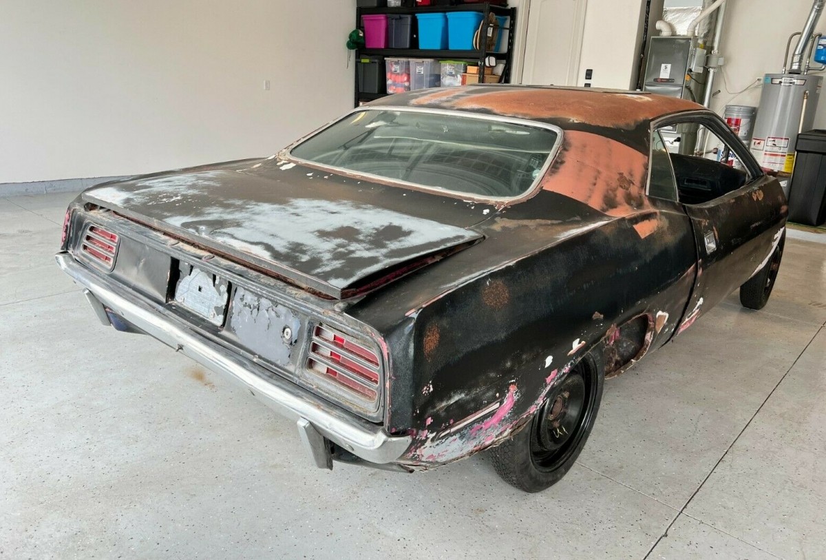 One unusual feature on this Barracuda is the addition of a sunroof which was installed by a prior owner, not by the factory and likely not by the selling dealer. If this car were a sweet survivor or a nicely done restoration, the rare color would help it fetch a pretty penny on the open market. But getting this rough roller to that same level of quality will not come cheap.
