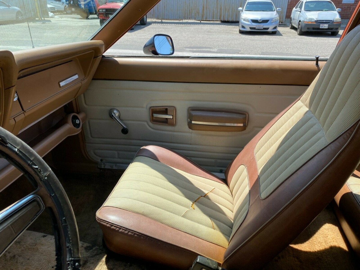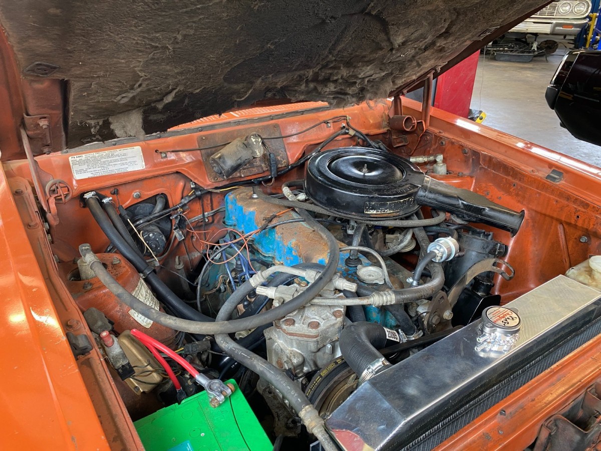As a result of all this work, we’re told the cars runs and drives great now. The exterior of the car has been detailed and the Mellow Yellow Orange paint and graphics have been brought back to life. The finish is not perfect, with the grill area being the most noticeable, but they’re only original once so why mess with it? The interior is vintage ‘70s, with the front seat covers and carpeting looking tattered and ready for an intervention.