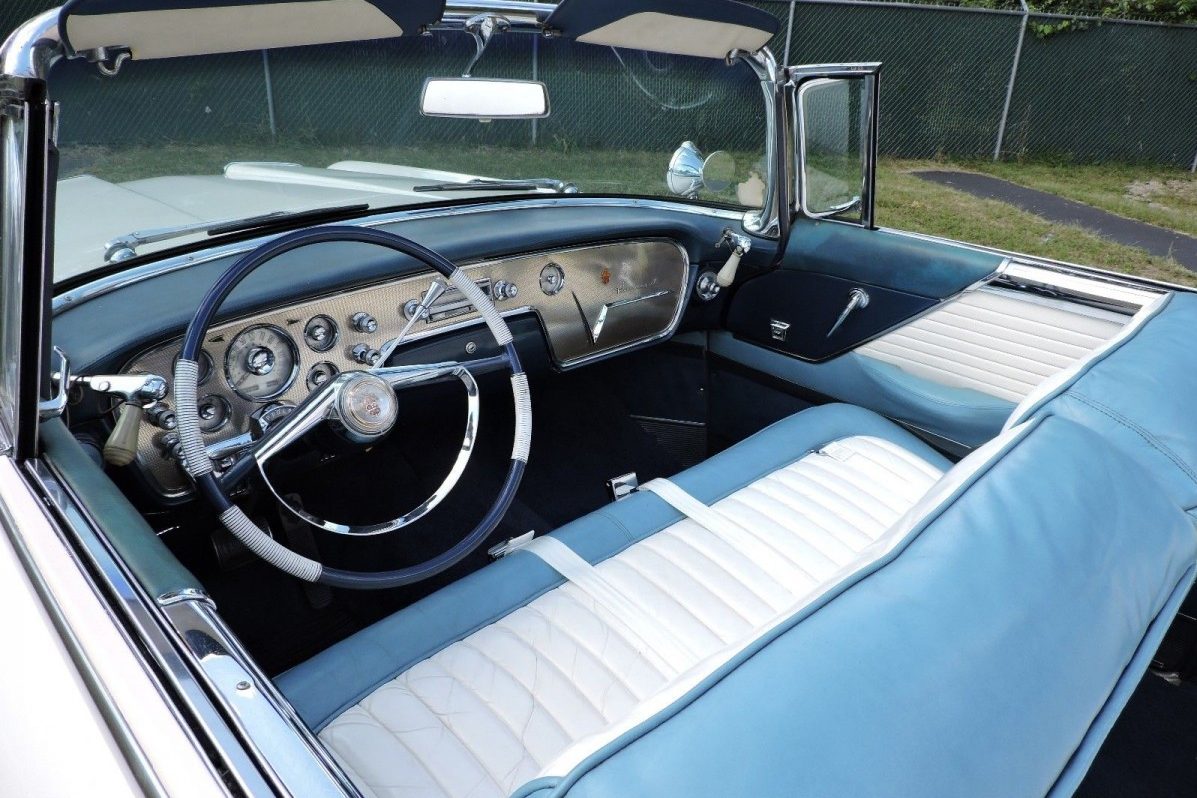 When World War II drew to a close Packard was in a strong financial position. Sadly, as this particular Caribbean was rolling down the production line a decade later the company was in its death throes. Its ultimate demise was not the result of producing bad cars, but of bad decision-making by senior management. The Caribbean was by no means a bad car, and this one is a nice example. The paint finish exhibits a good shine, and there a is no visible evidence of rust. The seller states that he believes that the White Jade paint was resprayed some years ago, but the blue tones are original.