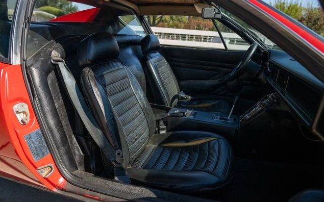 I was initially reluctant to cover a federally bumperized DeTomaso Pantera because I recalled how awkwardly they wore those hideous five MPH rammers. That said, and maybe it’s the passage of time, this example wears them well. This two-seater gives fantastic initial images but upon drilling down, two things come to light. One is the obvious change from Grabber Blue to fire-engine red, as stated in the listing, shown on the accompanying Marti Report, and evident on the underside of the engine hatch. The other is rust, specifically rust-through in both rocker panels. There are various other places where the red repaint is wearing through and revealing the original finish.