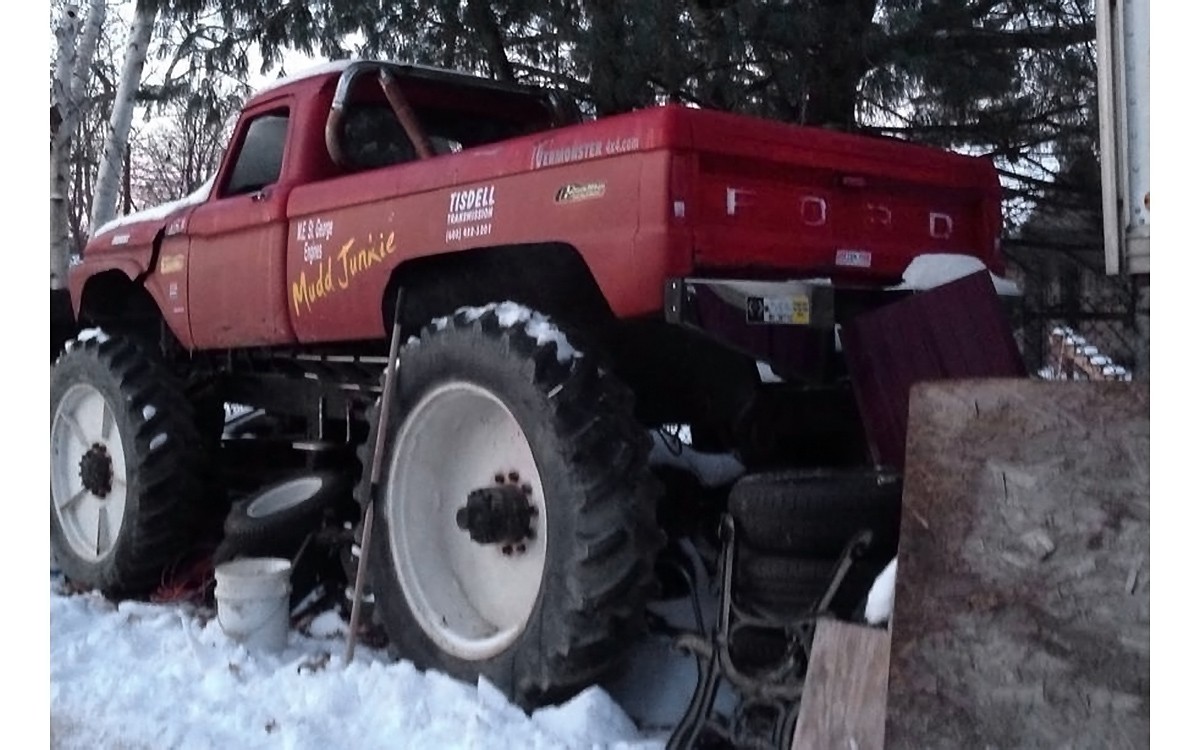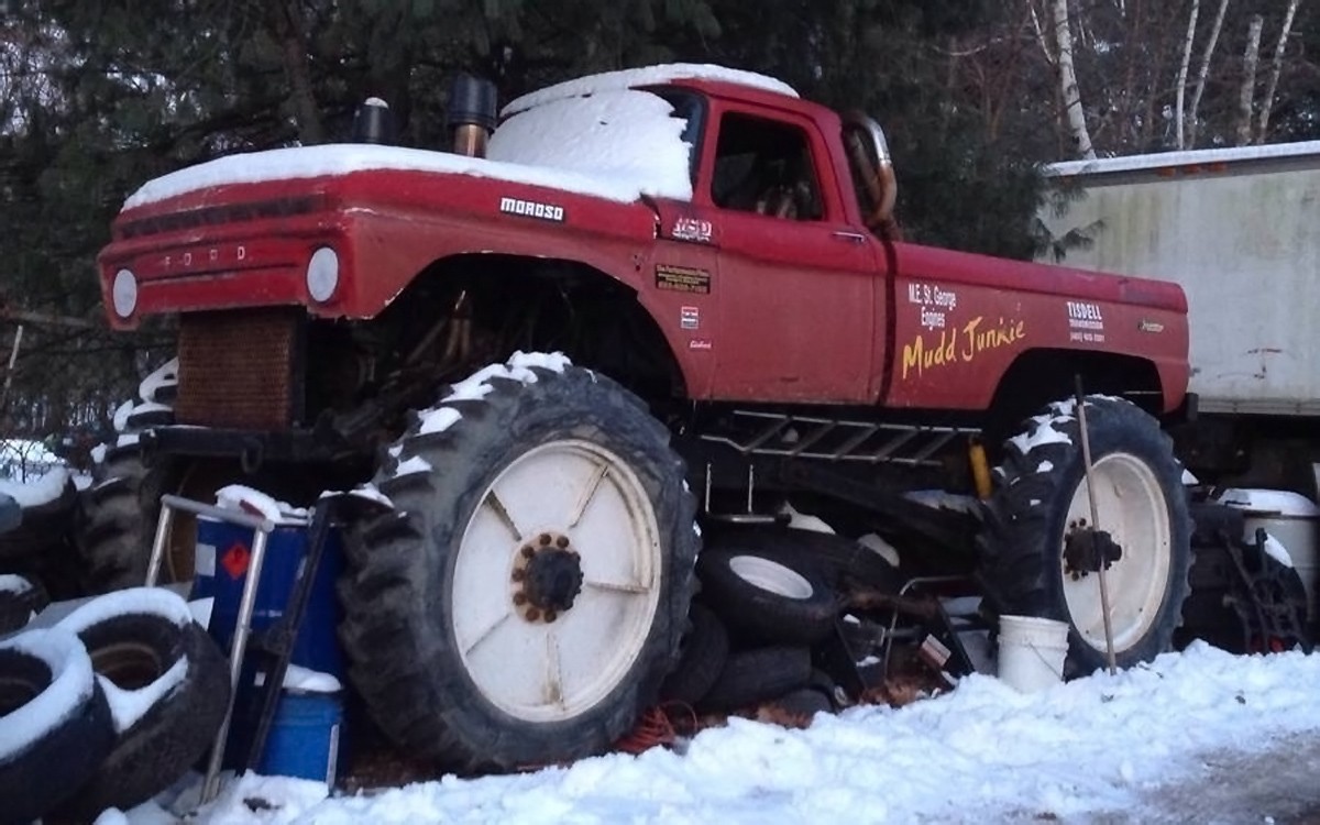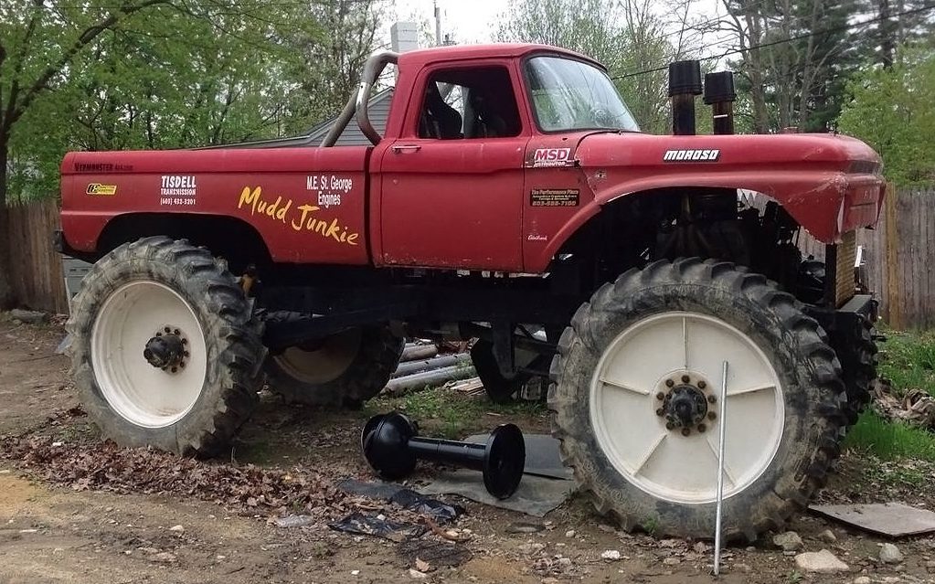 The seller doesn’t give any interior or engine photos, or really too much info on this super cool monster truck, but that may be a New Hampshire thing rather than a Craigslist thing. They say “I have a 1965 Ford Monster truck with a 557 big block, has 5 ton axles duel transfer case, built trans, lots of money and time invested. Call for any question. Serious inquires only.” I thought that my new winter vehicle got horrible mileage at 15 mpg, what would Mudd Junkie get? 1.5? I guess you’re only going the length of an arena with something like this anyway. Seriously though, this one was sent in by a Barn Finds reader who didn’t leave their name, so thanks to the phantom monster truck lover! Add me to the list of Mudd Junkie fans, too! What uses could you see for this monster Ford?