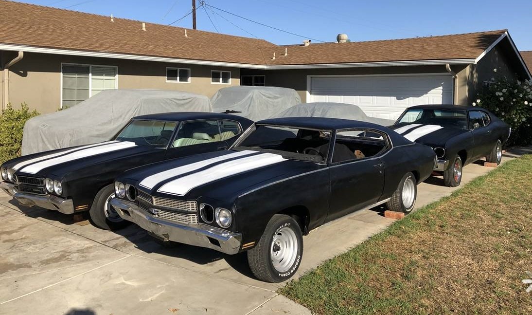 Chevrolet rolled out the Chevelle in 1964 (along with other GM divisions) to enter the new mid-sized market of cars that had been blossoming. The Chevelle got its first major redesign in 1968 and that generation would prove quite popular (1968-72). Because of their good looks and speed, the SS 3396 has become the subject of many a tribute car, and we believe that’s what the seller was starting to do with these three 1970 Malibu’s.