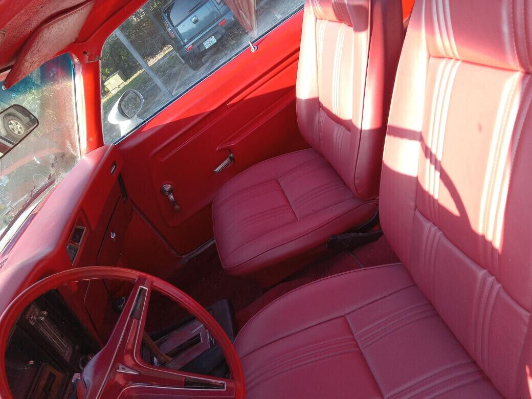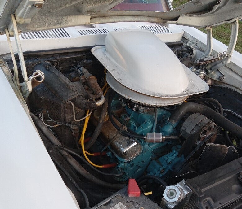 While this GTO looks good at a glance, we’re told that the body and paint are far from perfect, but certainly passable. The floors were replaced last year along with the passenger side rear quarter panel. Some filler material is present. This was the result of being a Georgia car for most of its life. The hood is not original and is a stock Ventura hood that the seller cut a hole in to accommodate the Grabber scoop on the replacement engine. From what we can tell, the interior is fine and the red upholstery is a nice contrast to the mostly original white paint on the exterior.