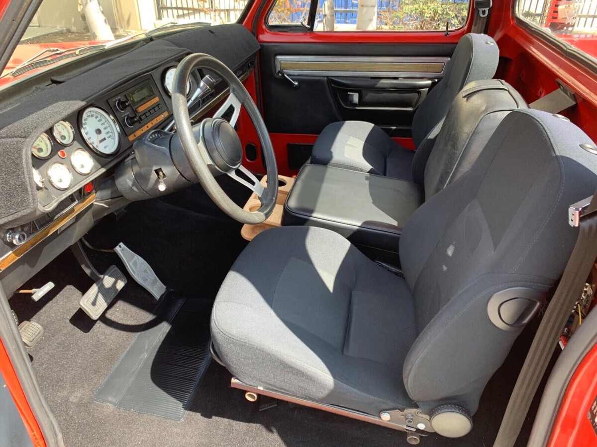 We’re told this ’79 Li’l Red is a California truck and has the requisite blue and yellow license plates. The original owner had it for a long time and it was sold by his sister after he eventually passed away. At some point, the paint was redone and looks good, but it’s far from perfect, prompting the seller to describe it as being in “driver condition”. The appearance of the truck shouldn’t disappoint unless you’re a perfectionist. The interior is not original in terms of the seats having been replaced at some point.