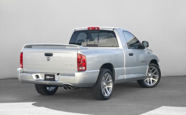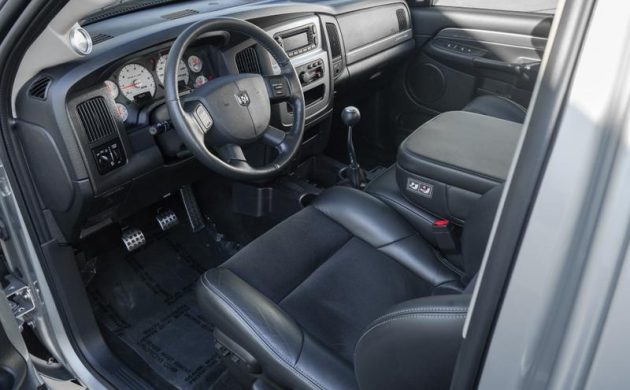 Drool! Look at that profile. The combination of the polished wheels, subtle twin-outlet exhaust, and additional body cladding transforms the Ram from a workhorse into a warrior, and I personally like these trucks in the more subdued colors like silver. Years ago, I had a coworker with the extended cab version in red, and it just looked as loud as you’d expect a truck with a Viper drivetrain to look; finding one in single-cab form allows it to blend in a bit more while obviously providing the proportions that muscle truck lovers. Short bed, single cab, and rear-wheel drive: is there a better spec in the pickup truck world?