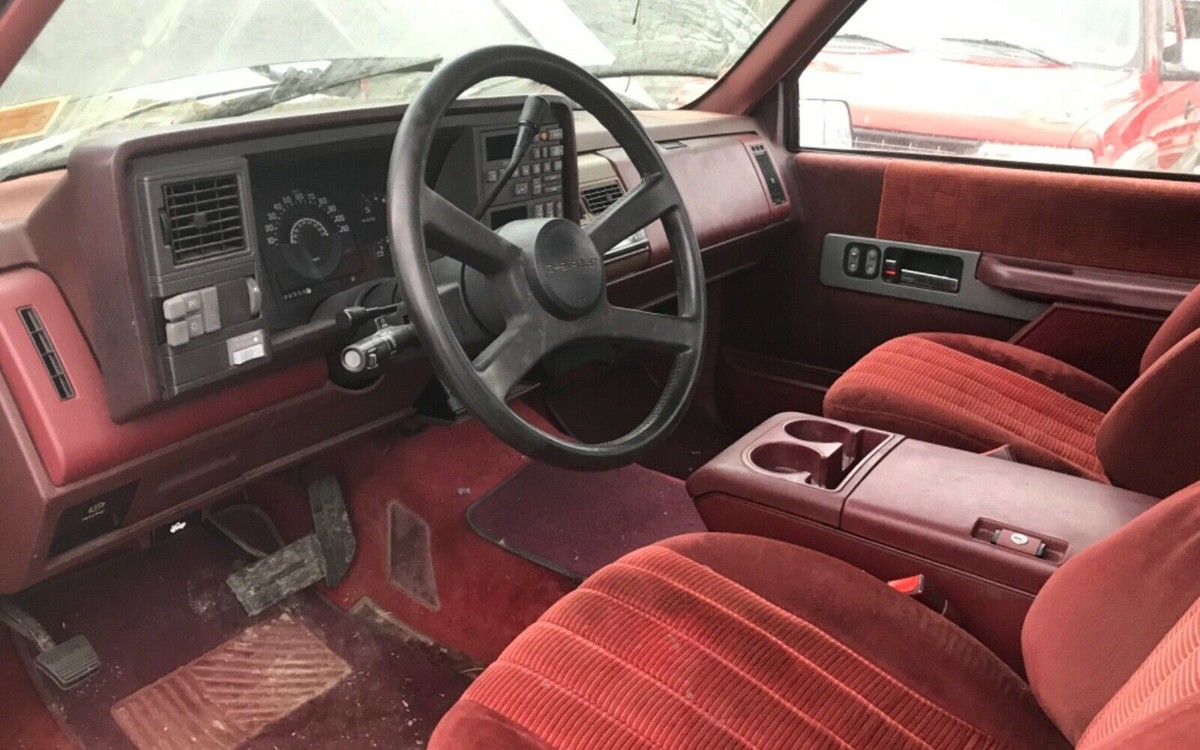 I have a 90 GMC extended cab i will sell to anyone interested for 5 figures. Same interior, a sea of maroon and the exterior is matching maroon as well.