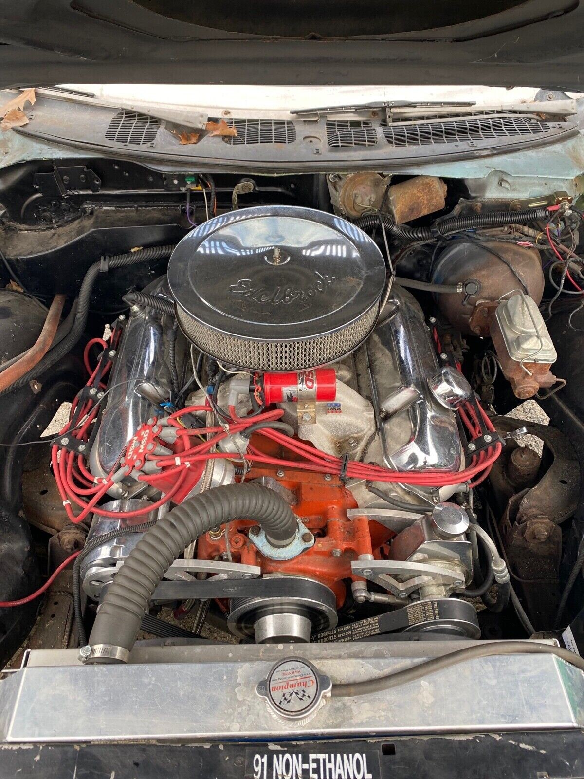 Love them 440 4bbl when you mash the go fast they always cough twice then redline. My dad had a 74 New Yorker 2 dr. he parked it in the back yard when he got a company vehicle pulled the plugs dumped in some oil and turned crank by hand. The mice and lack of stone underneath ate at that car for 15 years and when I was 15 I asked if I could have it when I turned 16 my dad refused saying it would take too much to get it road worthy so I said well can I drive it around the back yard and he said that things locked up, fuel lines are clogged, it will never run but if you wanna try go ahead. I biked 3 miles into town with 5 gallon gas can and filled it up, when I got back I dumped it all in behind the license plate and went and nabbed the battery off his Kubota once I turned that key I didn’t let off and I pumped the petal til she got a drink and she roared to life my dad couldn’t believe it. I floated that thing around our 2 acre go-kart track about 2 laps before the rotted exhaust wadded up a rolled out the back leaving headers only and man can a 440 sing when the 4 barrel flops open. The noise upset the neighbors who called my parents complaining I was rattling the pictures on their walls and they lived ¼ mile away. My dad sold it to their son at the end of summer for $175 so he could derby it at the fair, that boy got his money’s worth cause that boat lasted 4 years at the Elkhart County 4H Fair. Mopar or No Car.
