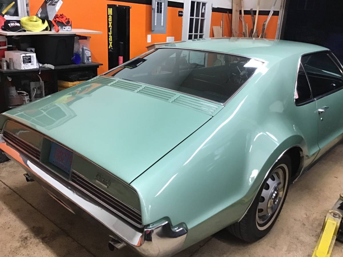 In retrospect I may have been just a little harsh on this particular Toronado. It definitely does have its pluses that do balance out its needs to a certain degree and quite frankly it is priced accordingly to be perfectly honest. As I mentioned, these are incredibly hard to find correct and original, I got lucky in finally finding my original condition two long term owner Black plate car. Plus- it is the same color as the one my Dad came home with in 66, when I was a boy, Champagne Mist – as odd as it sounds picture a Silver Gold, that’s it. I got her out of California and to North Atlanta, where she belongs! The color palette that Olds offered on these was unique, and gorgeous in many cases.