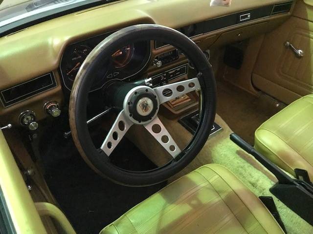 Pressed steel wheels, made to look fancier than the crappy body color keyed wheelcovers offered during these years. Steering wheel is stock Pinto with the deluxe interior.