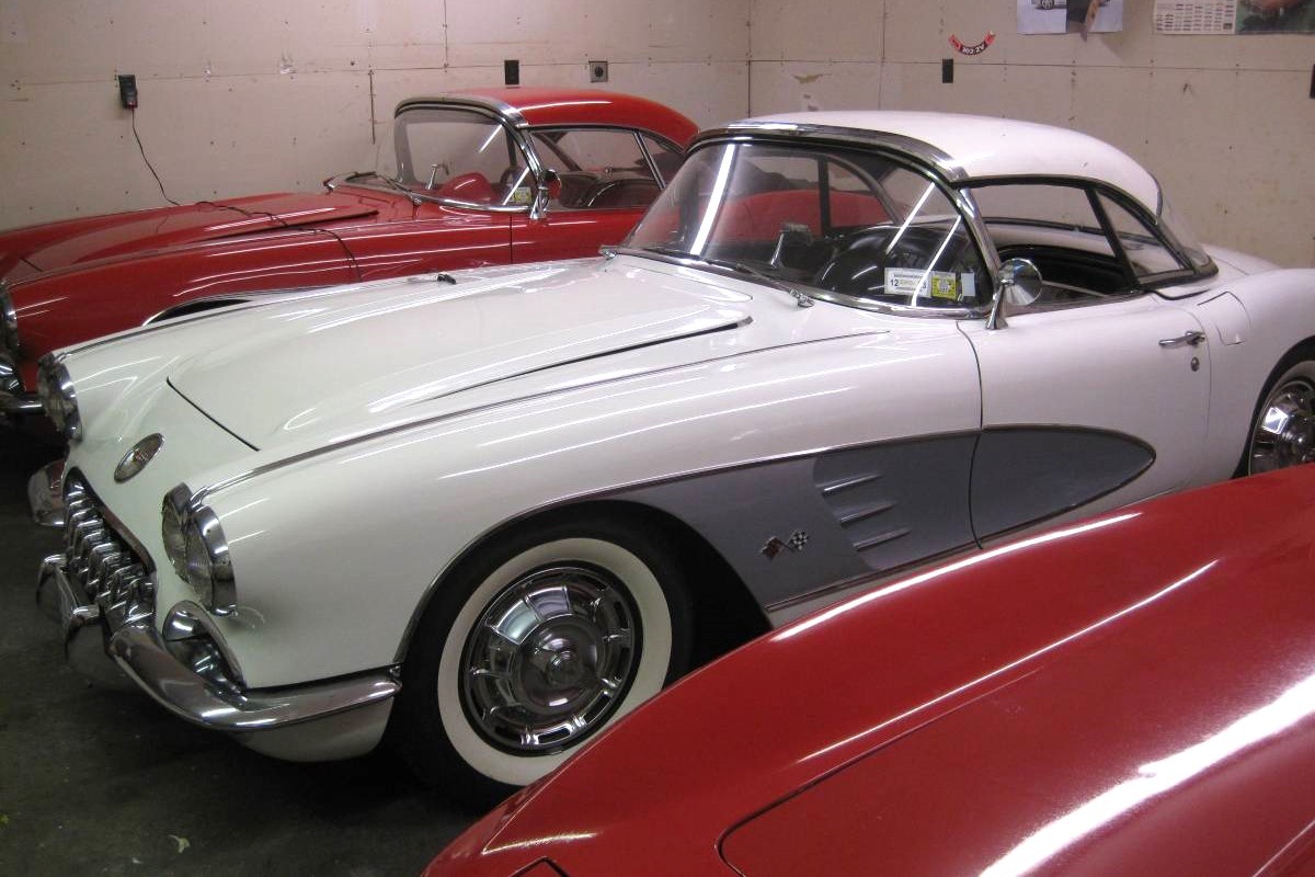 This is the red convertible in the corner of the garage/warehouse. We’re told it has the optional hardtop and is equipped with a 327 cubic inch V8 and a 4-speed. But since the 327 didn’t come out until 1962, the sports car is no longer numbers-matching. The asking price is $72,000.