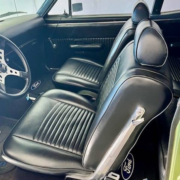 The body and paint present well, as does the contrasting vinyl top. The interior has been reworked and looks stellar, even with an aftermarket steering wheel. The only thing missing from this classic might be air conditioning (so roll down the windows and let the wind blow through what’s left of your hair!). One question is whether this Falcon will sell in a price range that might net you a Mustang instead.
