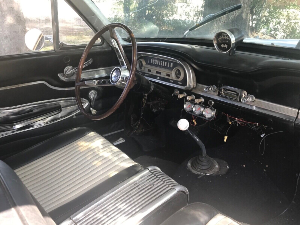 I presently own a 63 Falcon “Sport Futura” which is similar to the sprint options. My car like this one has bucket seats and a 4 speed transmission – all factory original. A real Sprint can be hard to identify but this one has some of the cues. Ford did not provide any specific sprint identifier in the Vin numbers. The Tach on the dash looks correct (can be worth $500 alone) The seat covers look correct as does the center console. The back panel at the trunk is hard to clone. My car has letters spelling “FUTURA” on the back deck. Only the Sprint had the letters “FALCON” on the back panel. With all different mounting holes between the two most people tying to clone a Futura as a Sprint don’t bother to change that detail. This body likely is an actual sprint and hence a bit more desirable.