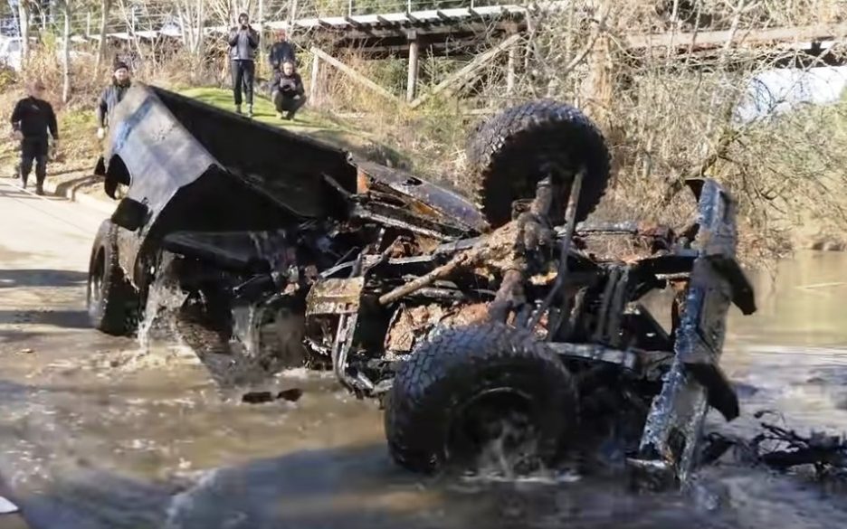 The remains of this Chevrolet Silverado 4×4 pickup truck fared worse than the others, barely holding together on the way out. In addition to hardened criminals, average citizens sometimes make their vehicles “disappear” and report them as stolen to collect the insurance money.