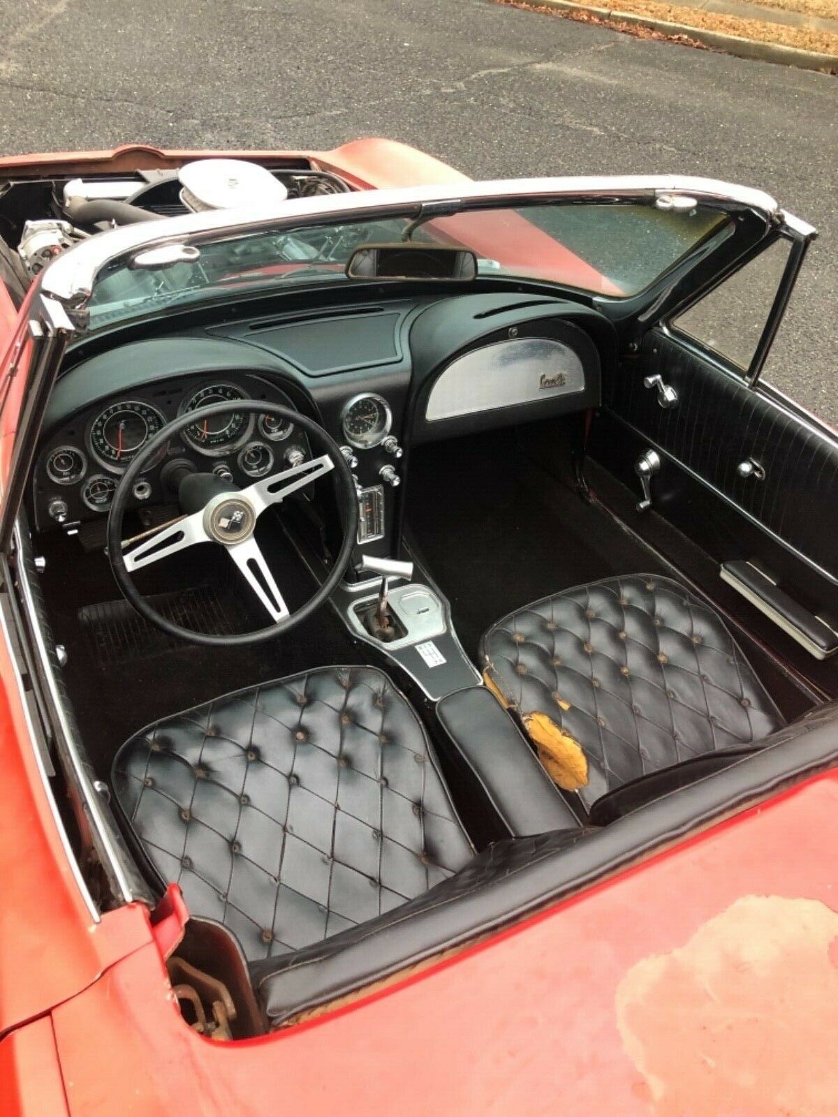 Wait a minute! That’s a big block Chevrolet V-8. Big blocks didn’t originally come in 1964 Corvettes! As a matter of fact, all Corvette engines that year were 327 cubic inch small blocks ranging from 250 to 375 horsepower. So what’s a big block doing in there, and how much will it hurt the value of the car? The seller tells us it has aluminum heads and is a “pump gas stroker motor” but they don’t know the exact specifications. Obviously, this is a big bummer to originality fans and I’m pretty sure some of you are turned completely off by it. However — some of you just started salivating (yes, you know who you are)! How would you like this project, and what do you think a fair price would be? Let us know in the comments!
