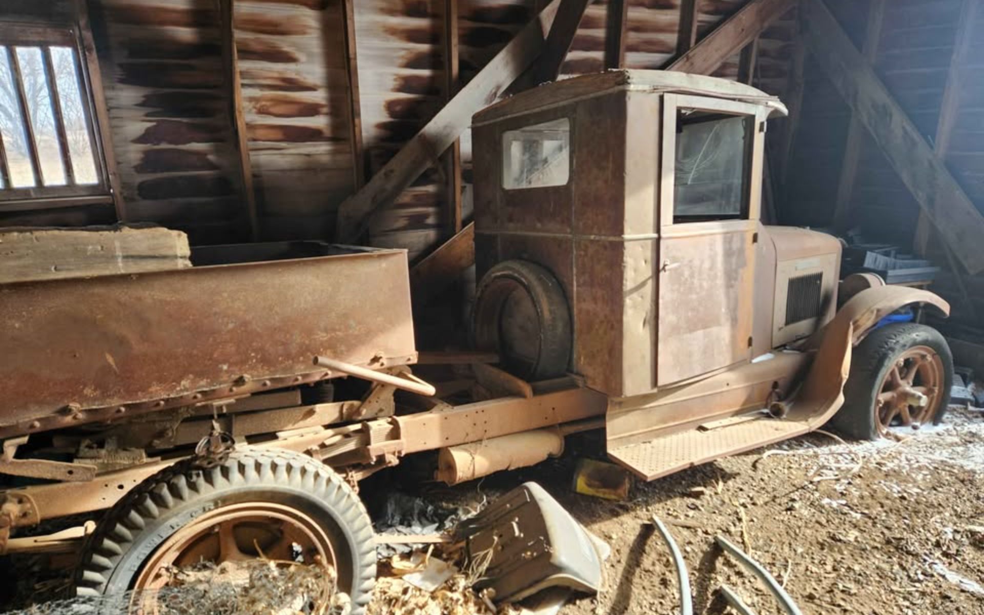 Now THIS…. Is a Barnfind!!!! It actually came with the barn. First off. Great write up Elizabeth!!! Thank you, and a great tip too NW Iowa Kevin. I saw this on Fast Finds and was hoping to see it written up. I have no knowledge of these, other than looking up some photos of restored International 6 Speed Specials and this would look great restored. Like Howard said, a velvet rope around it. Maybe run it on a nice day on some private property. I like the authors viewpoint here, from a history standpoint, to see if you could dig up who’s it was what it was used for, what was the original color, information like that, and then try to make it as close to original as possible. Digging for information like that would be a deep rabbit hole to go down, almost 100 years worth of time has passed since this was new, and it would be a great winter project too while waiting for some warmer weather to start working on it. Please keep these old trucks coming!!! I really enjoyed it.