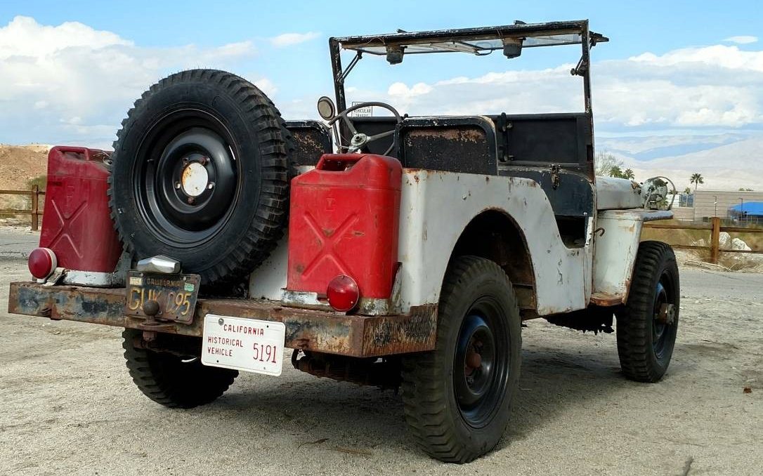 While I’m no expert( although I pretend to be one on BF’s) I think this is a CJ2A, made from 1946-1949. This, I read, was Willys first stab at a civilian Jeep, and was remarkably successful, over 1/4 million sold. Originally marketed as the “Agri-Jeep”, it could be had with a dozen attachments aimed at the farmer. It didn’t take long for “regular folks” to figure out, it was the best thing coming.
