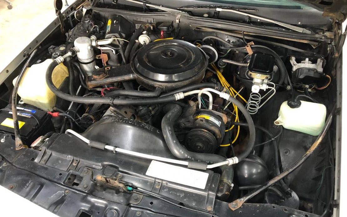 There is nothing NASCAR about the underhood view, here we have the standard 165HP 305 V8 that was in the normal Grand Prix. The sister to the Grand Prix Aerocoupe was the Chevy Monte Carlo SS which had a similar rear window treatment but was equipped with a HO 305 with a few more horsepower. Everything looks stock with the exception of bright yellow plug wires. These are great driving cars and have adequate power to get the job done. There is a huge aftermarket scene for the G body so engine, suspension, and brake upgrades are endless. There has never been a hot market for these cars but eighties classics are gaining popularity so this one may command the asking price.