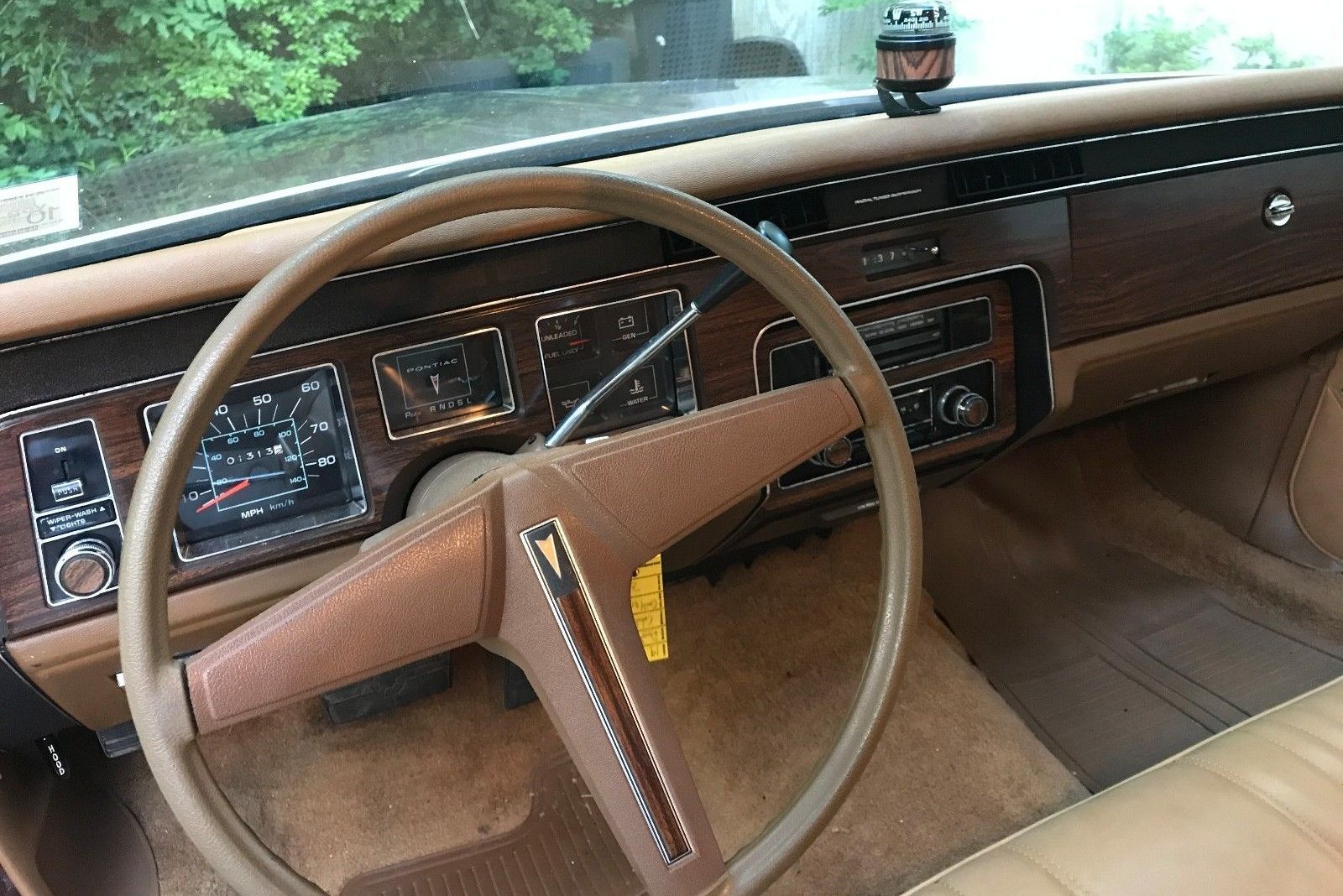 Check out the wood-grain compass! From sometime in the mid 1970s until the 1985 Ford Taurus came along, American car design eschewed the use of circles, and this Pontiac is no different. With some functional exceptions such as steering wheels and tires, and the occasional knob, circles were apparently old fashioned, and square headlights, grilles, instruments, etc. ruled the day. If you appreciate this style, Pontiac’s 1977 Catalina does not disappoint, offering a plethora of modern-looking rectangles. Another potential buyer might be someone with plans to relocate the car at its namesake, the California island of Santa Catalina. Nothing is more romantic than listening to the virtual silence of a stock 301 cid V8 while cruising a beautiful island… in a brown sedan with a tan vinyl interior… You adjust your gold chains, wink at a girl half your daughter’s age, and admire the rectangles. What’s your daydream for this 70’s cream-puff?