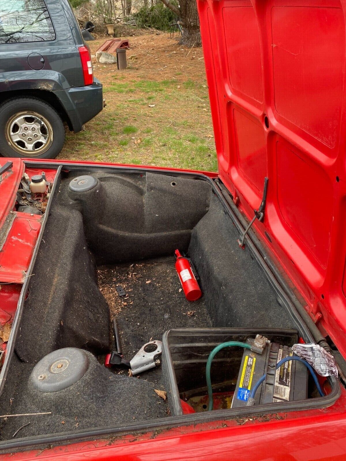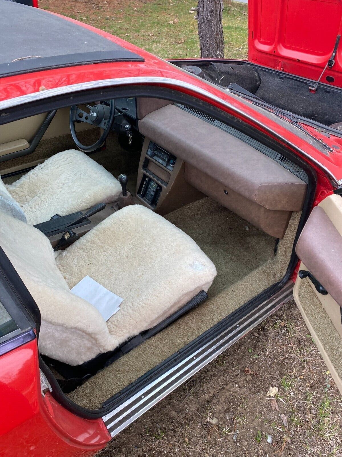 In order to sell the Scorpion in the US, several changes were required. Rather than the 2.0-liter motor, Lancia used Fiat’s 1.8-liter alternative, still a twin-cam, but with a lower compression ratio and a smaller carburetor, making only 85 hp. Additionally, the car was burdened by 5 mph bumpers and a pop-up headlight arrangement that added some 130 lbs to its weight. On the other hand, the car has a five-speed manual – not the four-speed of most of its competitors – and disc brakes all around. The seller indicates that this car used to run well and will now start up but dies when warm. It has new Koni struts, a new electronic ignition, an upgraded fuel pump, and Ansa exhaust tips. The seller stresses that the timing belt should be changed and the car needs a new battery.
