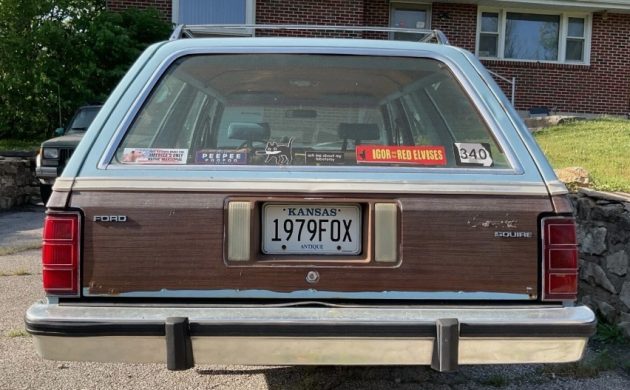 Ford’s Fox platform: How do I love thee? Let me count the ways. Well, there’s the Mustang, everyone knows that; there’s the Granada, ok that’s forgettable; the Mercury Cougar, a sentimental favorite because I learned to drive in a convertible version of its predecessor, the XR-7; the Thunderbird, righteous if it’s a Turbo; the Capri, I’d kinda like to have one; and among a few others, there’s the Fairmont – actually the first car Ford placed on the Fox platform. Here on eBay is a 1979 Fairmont Squire with bidding at $1950 and no reserve in play. Formerly a daily driver, this wagon will now struggle to get you home from Kansas City, Kansas, so a trailer might be wise.
