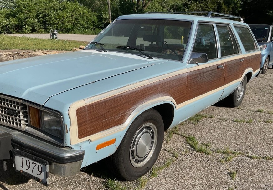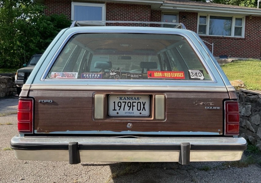 Ford’s Fox platform: How do I love thee? Let me count the ways. Well, there’s the Mustang, everyone knows that; there’s the Granada, ok that’s forgettable; the Mercury Cougar, a sentimental favorite because I learned to drive in a convertible version of its predecessor, the XR-7; the Thunderbird, righteous if it’s a Turbo; the Capri, I’d kinda like to have one; and among a few others, there’s the Fairmont – actually the first car Ford placed on the Fox platform. Here on eBay is a 1979 Fairmont Squire with bidding at $1950 and no reserve in play. Formerly a daily driver, this wagon will now struggle to get you home from Kansas City, Kansas, so a trailer might be wise.
