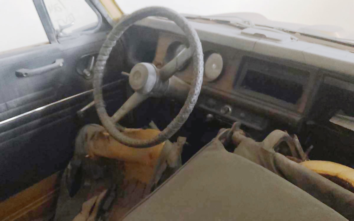 This is the only interior photo, and it looks like there’s a crack in the dash and lots of work to do inside. It’ll take a big fan of these small cars to take this project on, especially since the engine is “blown”, so that’ll probably be the hardest part to figure out what to do there.