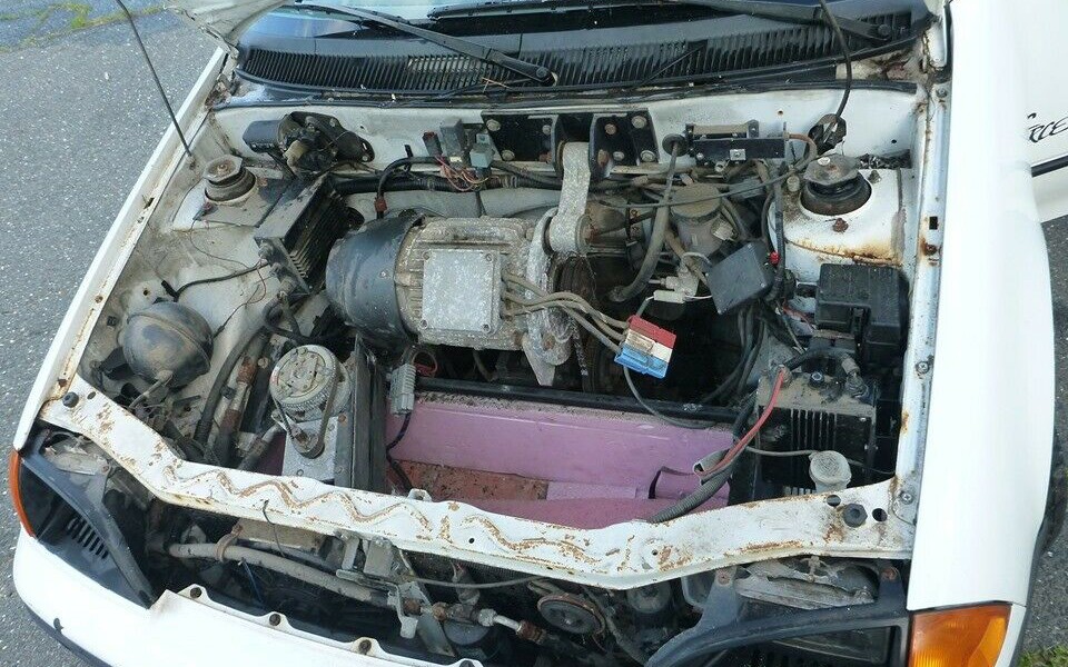 There’s a lot of something going on under the hood, just general aging and some light corrosion from living in an area that gets snow. That climate has never been kind to any cars that I can think of. The cost of 19 batteries would be more than the opening bid price and then fixing the rust wouldn’t be cheap. If a person liked unusual EVs, and those folks are out there, this would be an interesting and head-turning ride for the nearest Cars and Coffee.