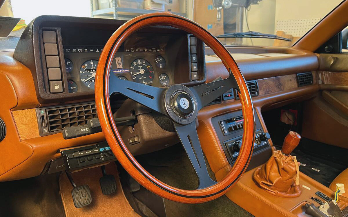 It’s impossible to argue with their interiors, though, or at least with the initial quality of materials. Over the decades, things can start showing their age as they do with humans and almost everything else. I don’t see many flaws inside this car, the seats would make Puff Daddy openly weep for their puffiness and beauty. The seller says that the backseat Alcantara needs some work and the suede headliner is starting to sag a bit. It looks original right down to the factory Maserati stereo. You can see that there is some work to be done with the power window switches, but what could be easier than working on the electrical system in an Italian car?