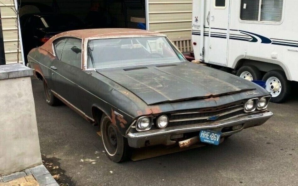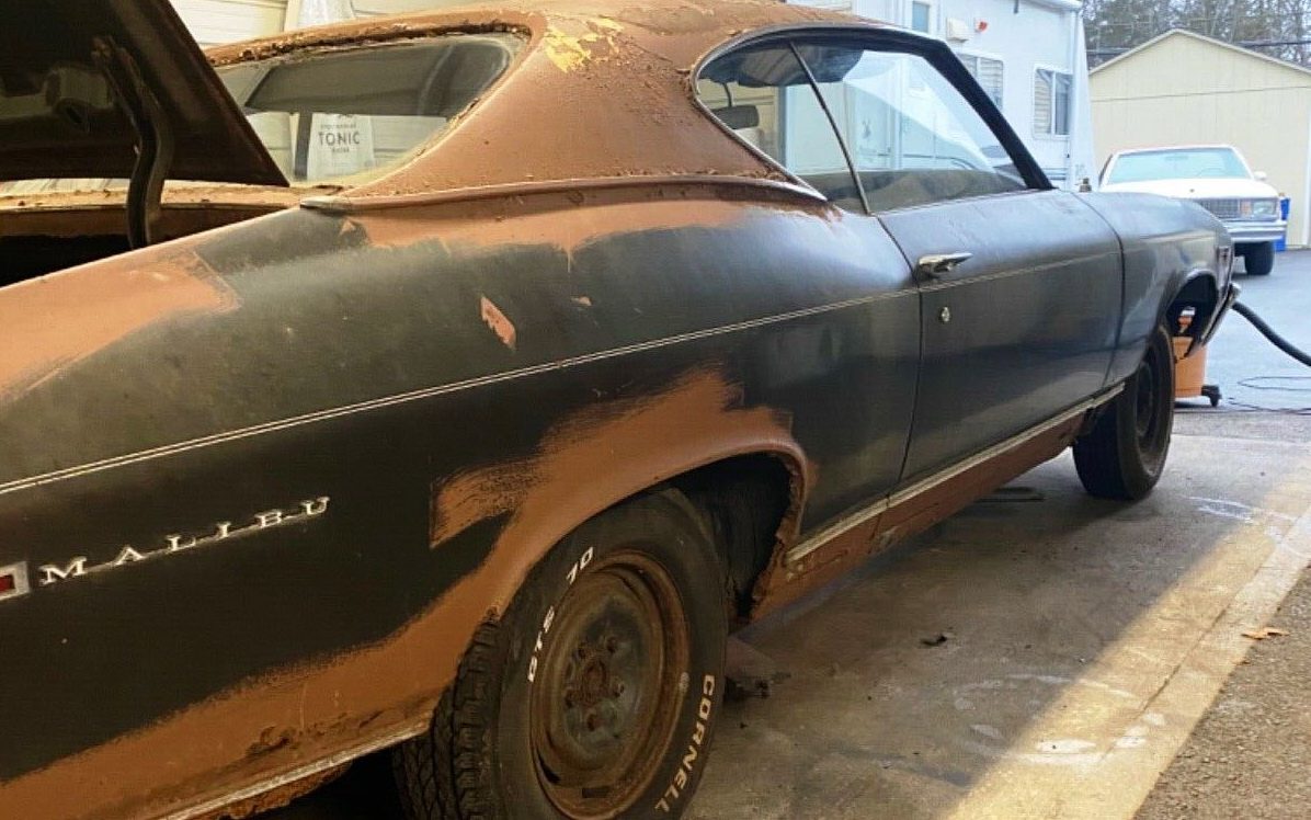 Nursing bar-fight bruises and a busted jaw, this 1969 Chevrolet Chevelle Malibu Sport Coupe in Monroe Township, New Jersey seeks a new owner here on eBay. Over 40 bids have lifted the market value of this modest Malibu beyond $2400. With heavy corrosion and rust-through visible in nearly every picture, someone must see something I don’t! Did I miss the part where is says that Bruce Springsteen lost his virtue in the back seat? The front suggests someone used the cosmetic part of the bumper to yank it out of a swamp, or from the salty brine of a ditch after super-storm Sandy.