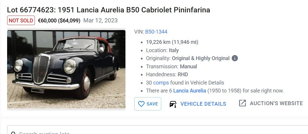 This car has been listed for a very long time. The ad is very weak on details and photos. There is no way to determine how complete the car is, what has been done, the quality of work, or what is still needed to finish the car. It’s a great car (I have an Aurelia coupe). The asking price is already higher than these B50’s normally sell for in excellent condition, so it is going to be difficult to find a buyer.
