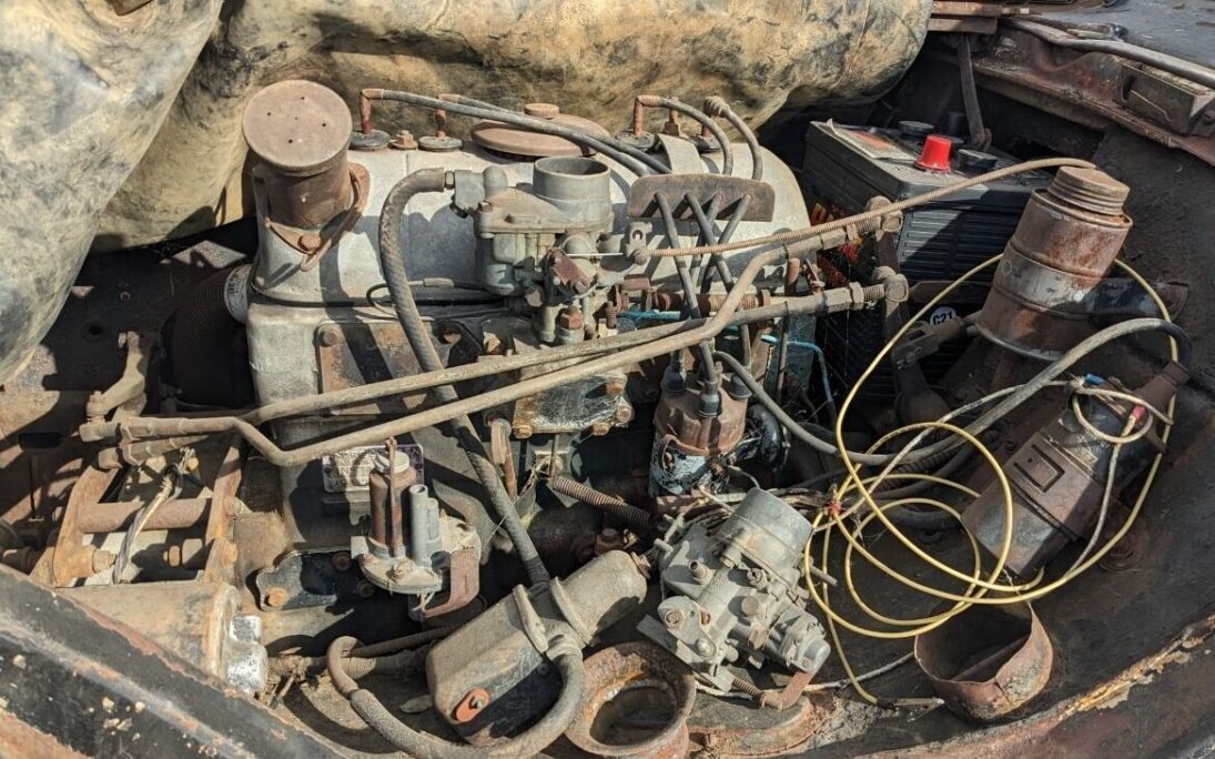 Power, when running, comes about courtesy of a 58 HP, 1.9 liter, in-line four-cylinder engine. There are various and different parts strewn around under the hood and I imagine that it’s a safe bet that this Traction Avant hasn’t performed any self-motivation since Charles DeGaulle was in office.