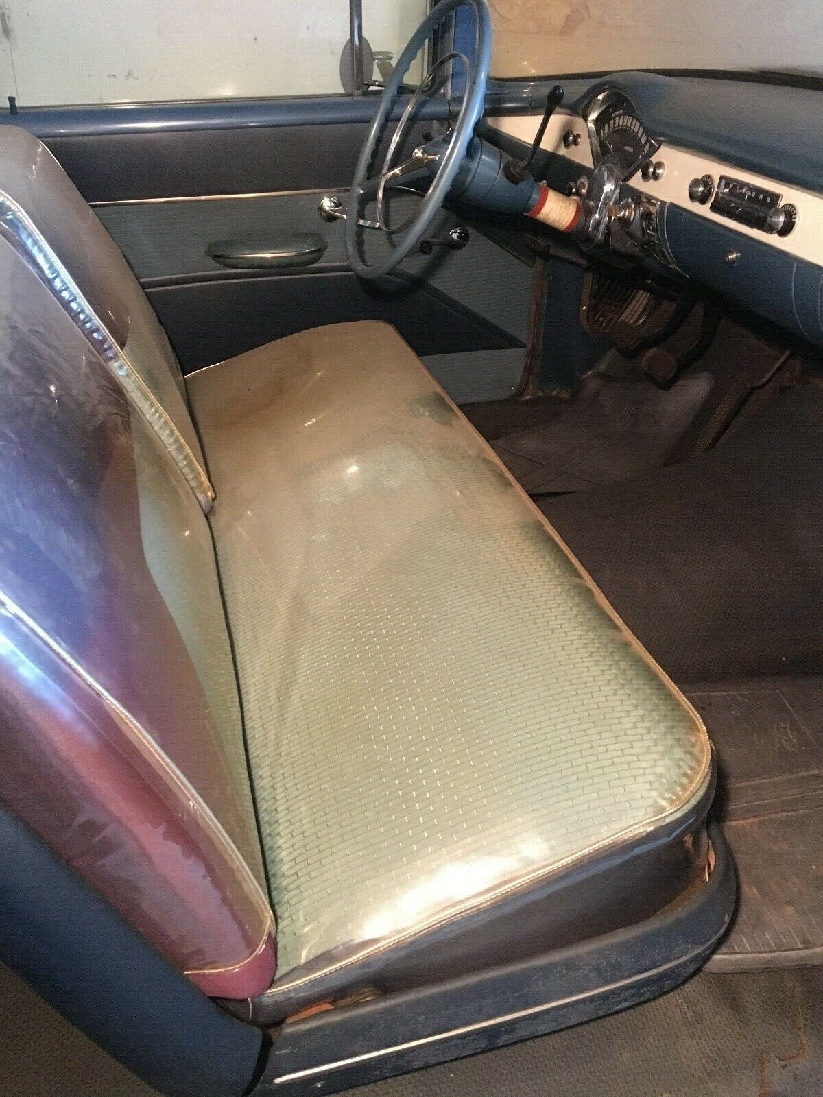 So many incomplete restorations…. What to do, what to do…? The internet is rife with them and its a study in human behavior. I’m always mystified regarding the owners rational when I see them and the reasons are vast and often entertaining or sometimes tragic. None the less, this 55, as many other DNF’s is a fun project for completion provided the next owner doesn’t have to correct a incorrect restoration. Simple cars, parts everywhere and reasonably priced. As another individual commented herein, much respect for maintaining the original 235 driveline.