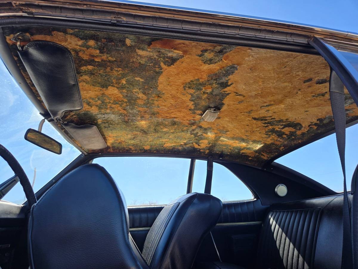 There’s nothing left of the headliner but glue. AMC advertising was always proud of its one-piece headliners, which were unlike the fabric-and-bow system most often used by its competitors. It might be easier to install but also possibly harder to find than a headliner for, say, a contemporary Chevelle or Torino.