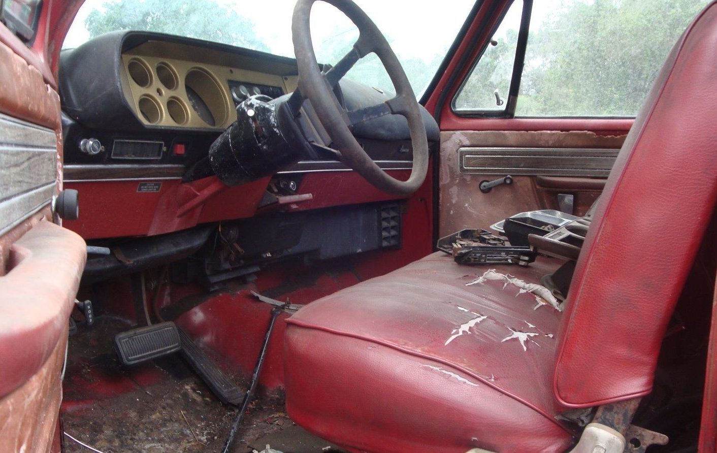 Fortunately, the seller believes the engine and transmission to be numbers-matching; unfortunately, he hasn’t even attempted to turn it over to verify it isn’t stuck. The listing says the starter is likely frozen and also that the neighborhood punks broke into the barn and cut the wires to the starter. As you can see by the open hose, the radiator has gone missing, which may have been pilfered by the same troublemakers. Also missing is the ’79-specific grill for the square headlights, but that shouldn’t be too hard to source. A Lil’ Red Express truck is always worth saving; does this one deserve rescuing?