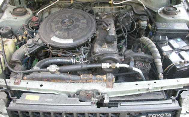 Toyota’s 3AC four-cylinder sits underhood, good for about 70 hp. This technologically conventional engine is as reliable as a rock and apparently capable of racking up over a million kilometers, but it’s propelling about 2200 lbs of curb weight, so performance is sluggish. A top-of-the-line six-speed manual handles gearchanges. Toyota manufactured its own single-range transfer case, actuated via the gear lever. Drivers were warned that 4WD should only be used when the car was in slippery conditions – mud, snow, gravel. Rain was not a good excuse for 4WD. This car is off the road, ostensibly due to the suspension issue – but we don’t even know if the engine runs. Spare parts include rear suspension pieces, engine belts, and an ignition coil.