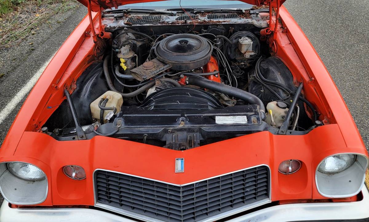 I saw one of these, a 74, at a recent show painted hugger orange with the white stripes. It had front and rear spoiler, a cowl hood, white seats with black dash and carpet and nicely built engine. Set of 8″ Vette rallys all around and was a real eye catcher. Low budget way to enter cars n coffee events and can be an eye catcher. You don’t see these around any more.