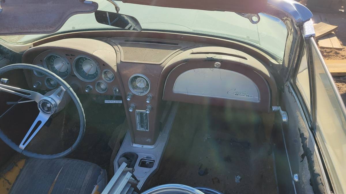 While most of the attention gets paid to the famous one-year-only 1963 split-window coupes, there were actually slightly more (10,919 to 10,594) convertibles produced that model year. It’s good to see all the gauges and switchgear in place, as well as the trim. The sale listing for the car shows an automatic transmission, but I think that looks like a manual to me. The majority of ’63s were produced with manual transmissions, and the majority of those were four-speeds.