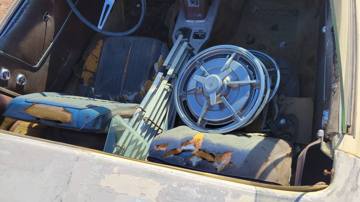 Here we see some more important pieces; the hubcaps look to be in nice shape (they aren’t cheap!) and what I believe to be the grille halves.