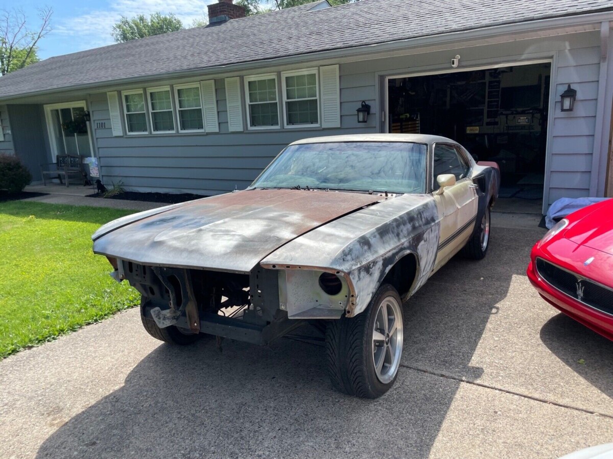 1969 Mustang Mach 1 empty engine bay