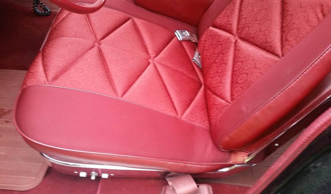The beauty is more than skin deep though, and a closer look inside reveals interesting details. Most noticeable of course is the exquisite condition, and the textured brocade cloth panels and vinyl interior.