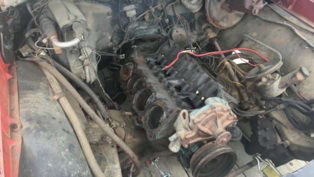 Those are very old-school Maine license plates, and I wonder how long it sat in what appears to be a glorified horse stall. The seller says it’s more solid than you might think, referencing a frame that’s in “…incredible condition,” but there’s certainly a fair amount of rust repair still needed: floorpans, rear quarters, one fender, possibly a trunk pan and roof pillars are all referenced as areas of concern by the seller.