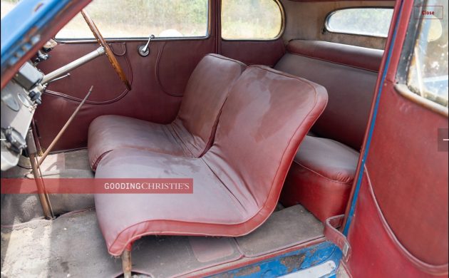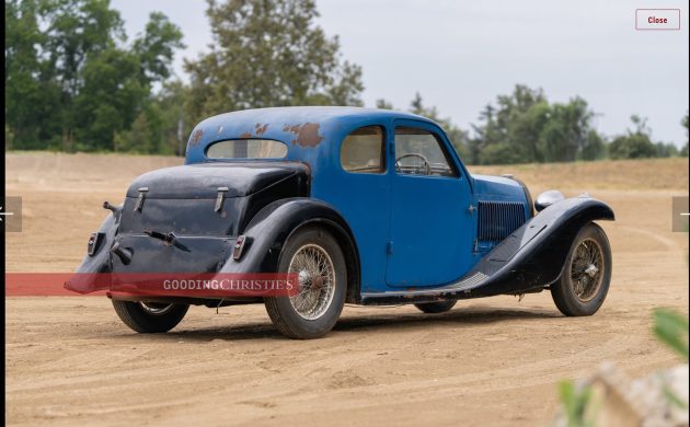 After being lost or at least ignored since the 1960s, this 1934 Bugatti Type 57 Ventoux comes to market for the first time since 2008, presented here by Gooding Christies for the 2025 Pebble Beach auctions August 15 – 16, 2025. That reminds me, I need to get my hotel reservation (maybe next year). While a novice might assume modern Bugatti supercars are Italian, the Blue de France hints that Bugatti are, in fact, French. Oui oui! The popular Ventoux coachwork, done in-house by Jean Bugatti, gives seating for four in a sporty two-door: the best of everything! G-C estimates a gavel drop in the range of $250,000 – $325,000. Bid to win this No Reserve auction, but only if you plan to do something useful with this neglected beauty.