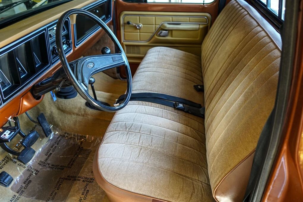 Being picky, I don’t think it’s original carpet. Way to perfect. No AC or other options is disappointing. I have a ’78 Supercab that has a really clean interior but paint is worn (patina as they say) with factory twin tanks, AC, cruise, tilt etc