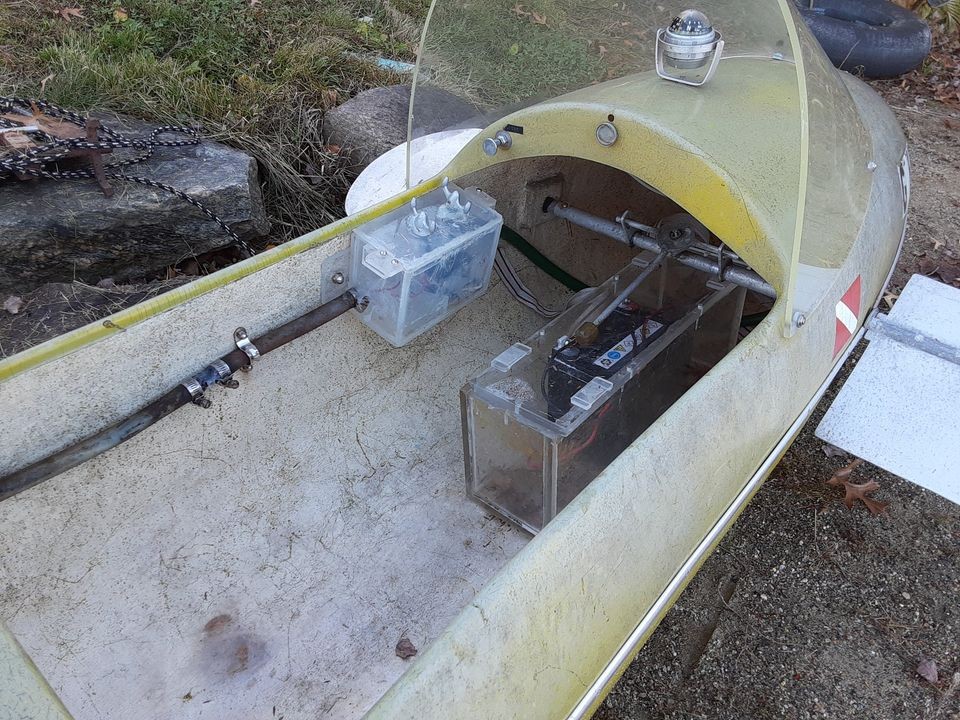Those clear acrylic cases for the battery look nothing like the “dry-wells” used today on kayaks. I can only imagine the technology required to make those seal perfectly so as not to get a shock between the legs upon one’s shallow descent.