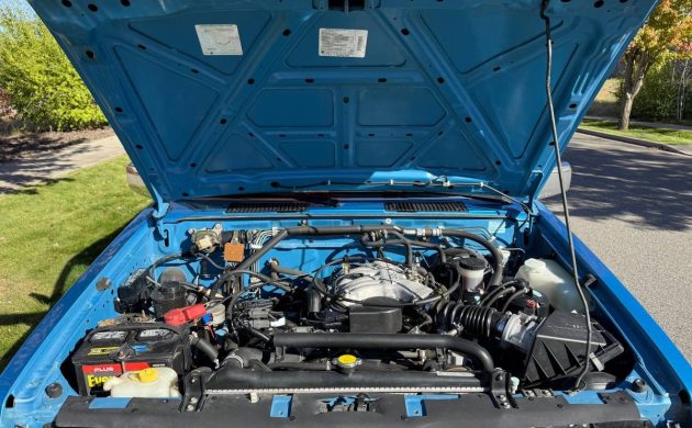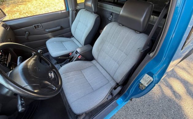 Let’s not overlook the other selling point: those incredible 1990s graphics. This Nissan came from a time when factory styling was somewhat memorable as opposed to the generic blobs we see leaving the factory now (although, to Nissan’s credit, they recently overhauled the Frontier’s design and it looks quite cool; shame they are shuttering the U.S. design studio.) From the colors to the factory decals, it didn’t matter whether you were buying a Corvette or a Nissan truck; everything was capable of being improved upon with some cosmetic tweaks. This Nissan looks terrific in factory teal blue paint with a matching bed cap.