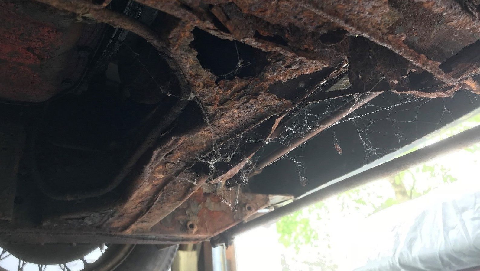 The floors are pretty rough as well, so even with chassis repairs done, you’ll still need to install replacement floor pans. Fortunately, a big bonus for this particular car is that the seller is including a brand-new chassis in the sale. That’s good news, as it will make the decision far easier to simply swap over the body, interior and mechanical components rather than attempting to save the chassis.