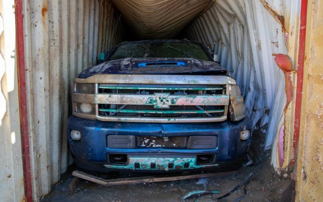 The two Silverados were going to Australia to be converted to right-hand-drive. Obviously they are beyond repair now, but at least they have been recovered.