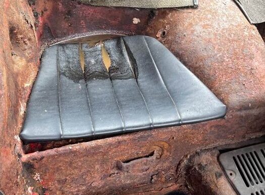 This one looks like it rained with the top off…often and then sat in the humidity. Takes a lot of nerve, or common sense I guess, to wring every dollar you can out of this. But 28 K for a P car that will need a rotisserie? Nope.