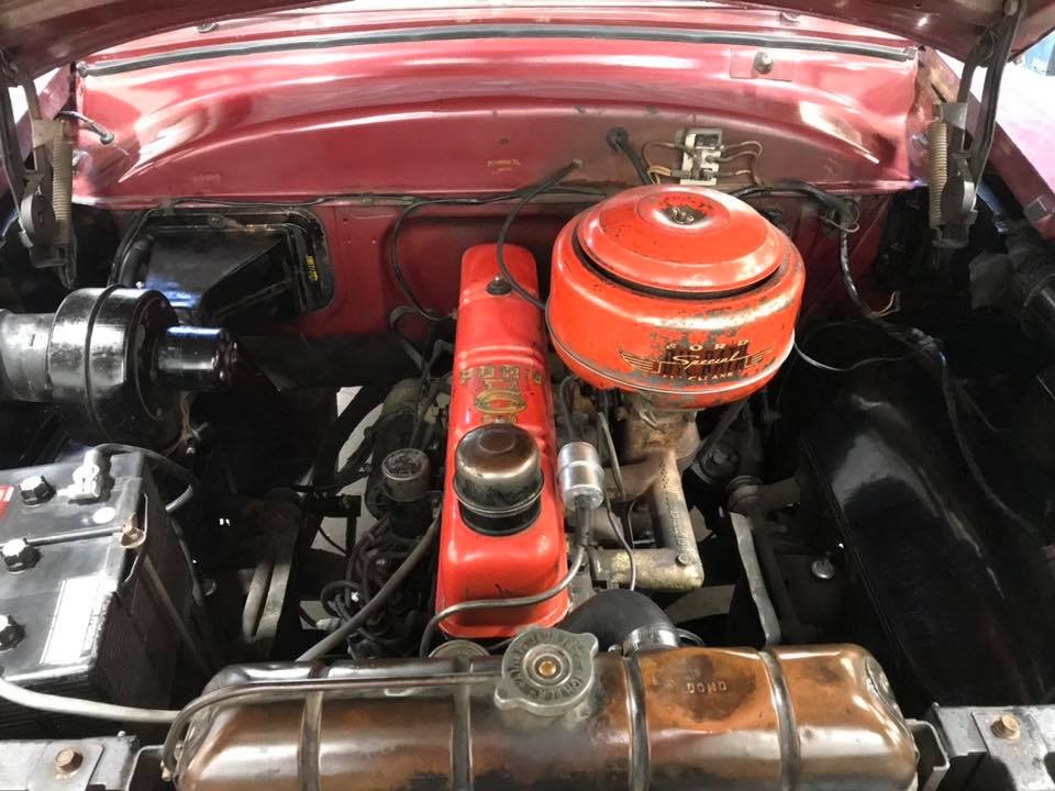 Neat car. Doesn’t need phony stick-on letters. The engine would be a 223 c.i. Other option would have been a one year only 239 ohv V8. First Y block.